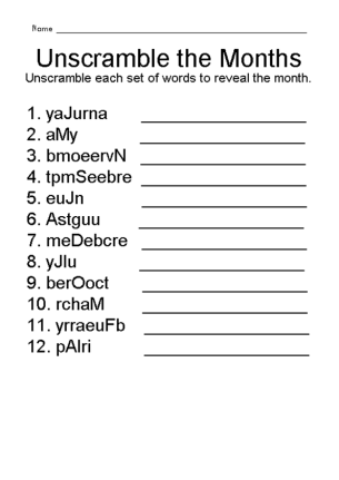Months Name Worksheet For Kindergarten - Unscramble The Months Worksheet -
